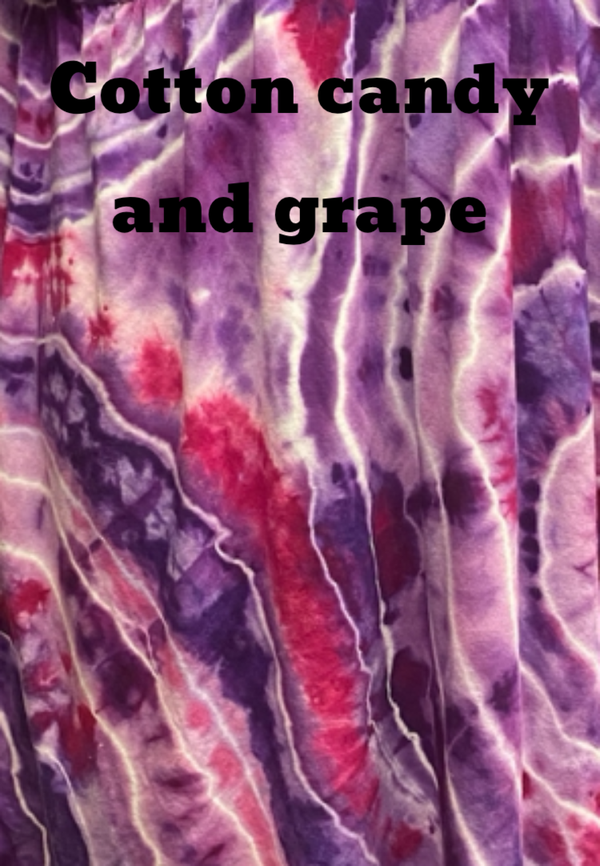 All pieces are hand tie dyed and one of a kind. Pictures are just examples of what it may look like.